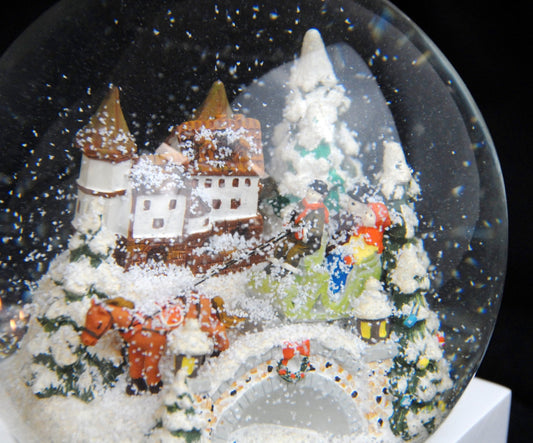 Stylische Schneekugel Megaformat Kutschfahrt über die Brücke Sockel weiß eck PURE-Line 15 cm Durchmesser