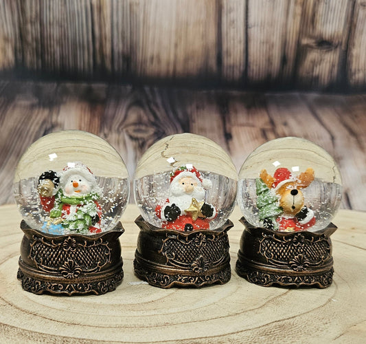 3 süße Mini-Schneekugeln Winter & Weihnacht mit Sockel antik Kupfer B: 45mm