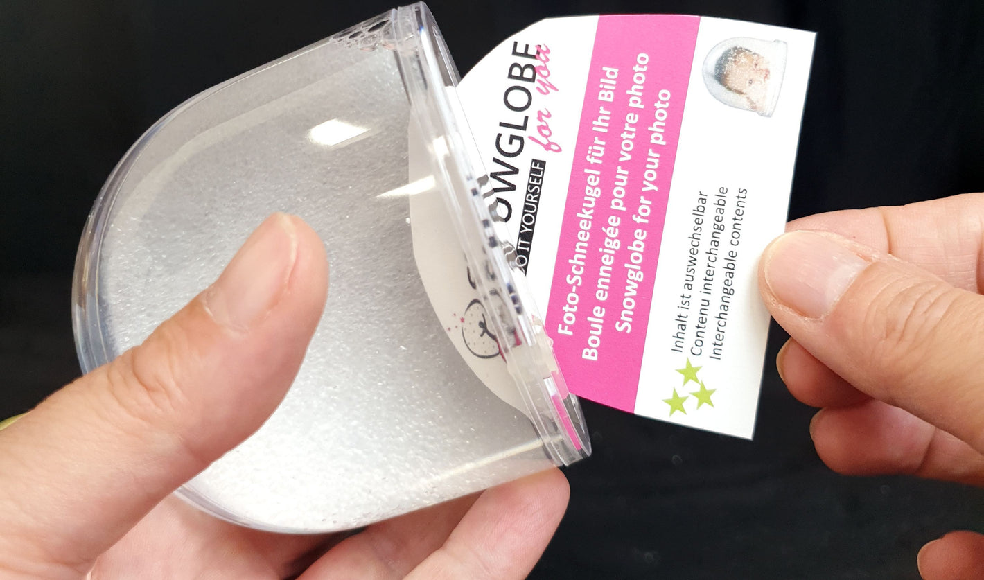 Foto-Schneekugeln aus Kunststoff - die klassische Lösung