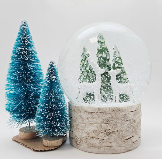 Schneekugel 2 Rehe auf Holzsockel "Country-Line" 10 cm Durchmesser