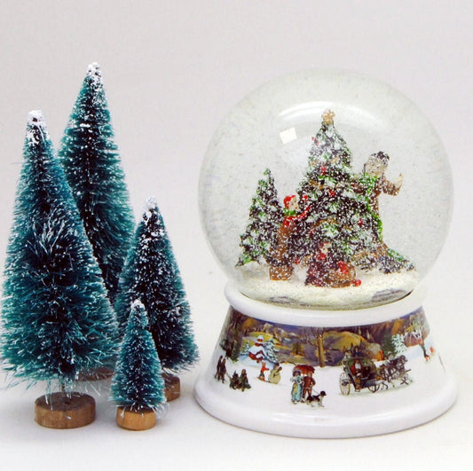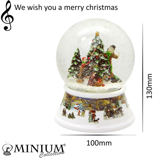 Schneekugel Weihnachtsbaum schmücken mit Geschenken auf Sockel nostalgische Schneelandschaft mit Spieluhr 10 cm Durchmesser