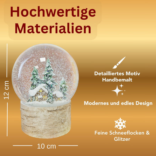 Schneekugel Hüttenzauber Berghütte im Winterwald auf Sockel Winterlandschaft braun mit Spieluhr 10 cm Durchmesser