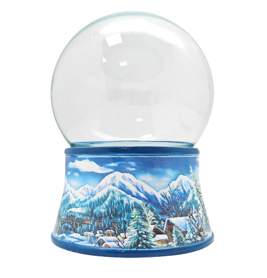 Schneekugel Berge mit Brücke auf Sockel weiß eck "PURE-Line" 10 cm Durchmesser
