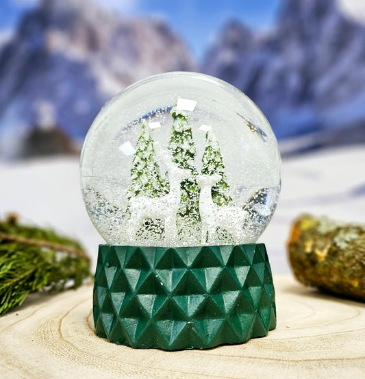 Schneekugel 2 Rehe auf Sockel grün kubisch "PURE-Line" 10 cm Durchmesser