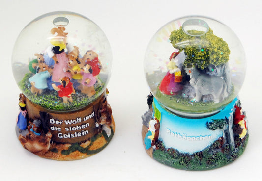 2 süße Märchen-Schneekugeln Märchen mit Wolf Rotkäppchen "Der Wolf und die 7 Geislein" - Luftblase