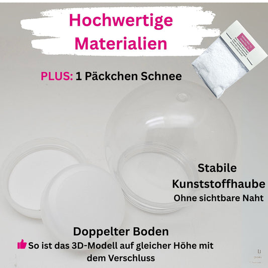 DIY-Komplett-Bastelset für Kunststoff-Schneekugel für 90 x 110 Kugelform mit Schnee, Glitzer, Wasserklar & Kleber