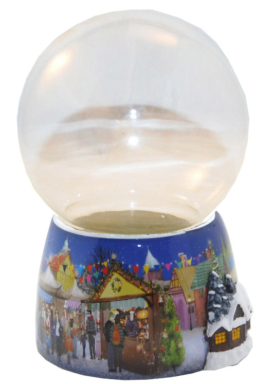 100mm-Do-it-Yourself Schneekugel mit Sockel Weihnachtsmarkt mit Haus für Spieluhr - 1x Schnee