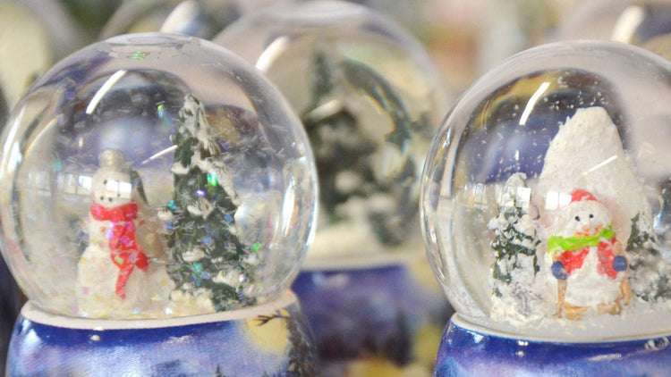 3 süße Mini-Schneekugeln Winter & Weihnacht mit Sockel weiß Nostalgie B: 45mm
