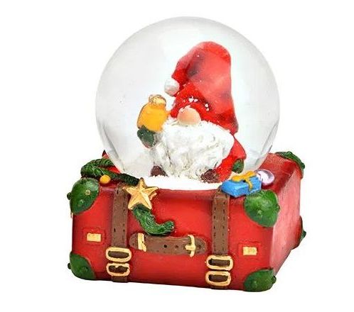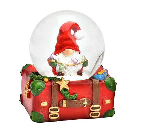 Süße Mini-Schneekugel Weihnachtswichtel Geschenk auf Koffer rot grün Weihnachten rot 45 mm Durchmesser