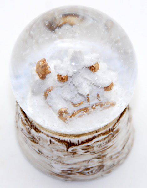 Süße Minikugel mit Reh,Schlitten und Tannenbaum in weiß und gold auf Holzsockel