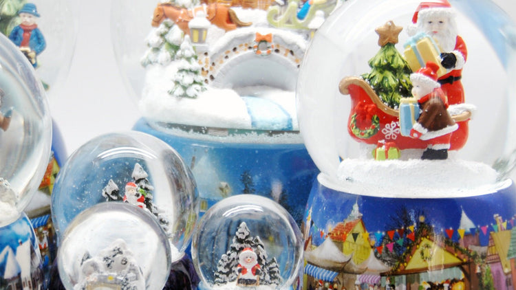 2 Süße Schneekugeln Zuckerbäcker auf Sockel Weihnachten 65 mm Durchmesser