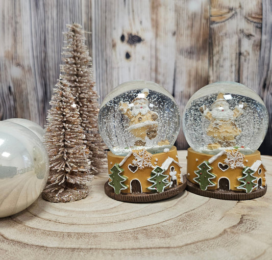 Süße Schneekugel Weihnachtsmann Muffin ocker auf Sockel Weihnachten 65 mm Durchmesser