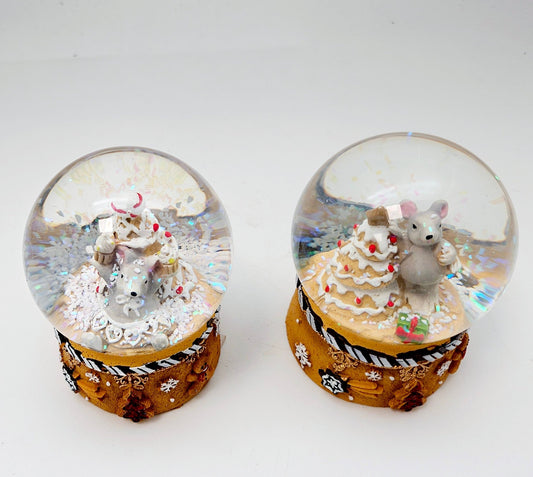 2 Süße Schneekugeln Weihnachtsmaus auf Sockel Weihnachtsbäckerei 65 mm Durchmesser