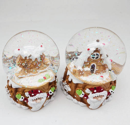 2 Süße Mini-Schneekugeln Nussknacker auf Sockel Weihnachtsbäckerei 45 mm Durchmesser