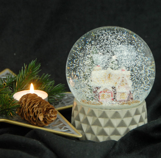 Schneekugel Zuckerbäckerhaus auf Sockel sand farben kubisch "PURE-Line" 10 cm Durchmesser