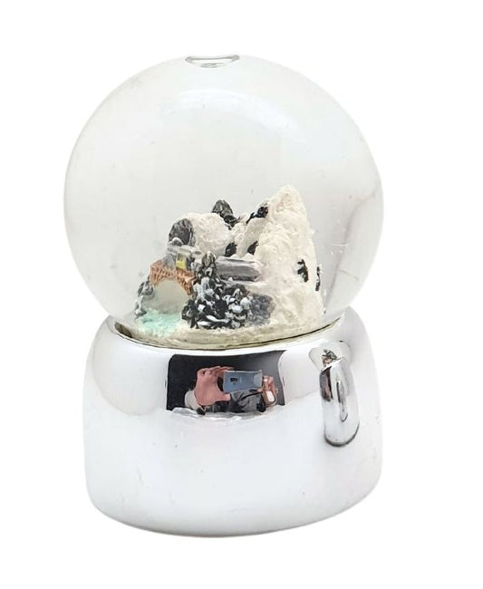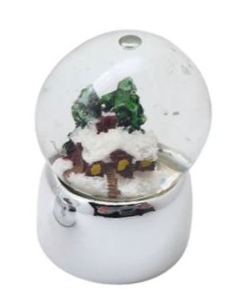 Süße Mini-Schneekugeln Winterlandschaft auf Silber-Sockel gerade glänzend - Luftblase