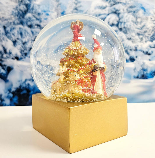 Designer Schneekugel Weihnachtsmann Christbaum rot gold Sockel gold eck PURE-Line 12 cm Durchmesser