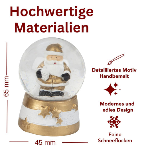 Moderne Mini-Schneekugel Weihnachtsmann gold weiß auf Sockel gold weiß Sterne B: 45mm