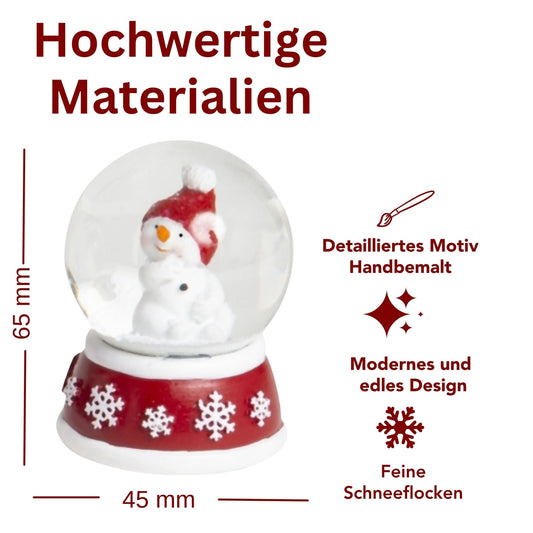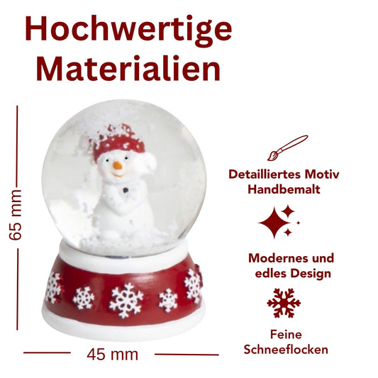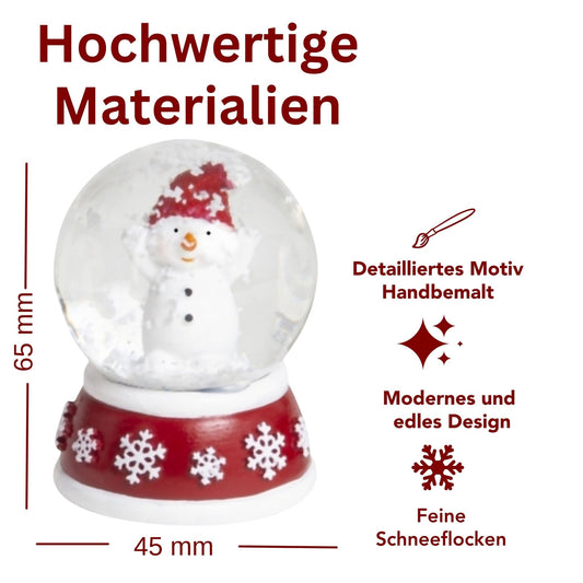 Süße Mini-Schneekugel Schneemann auf Sockel rot weiße Schneeeflocke B: 45mm