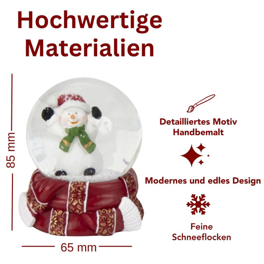 4 süße Mini-Schneekugeln Schneemann mit Sockel rot weiß Schneeflocke B: 45mm