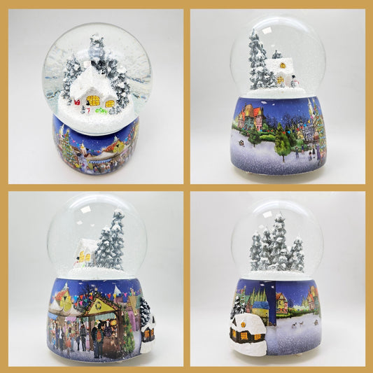 Nostalgie-Schneekugel mit Weihnachtsdorf mit Christbaum und Spieluhr Winter Wonderland