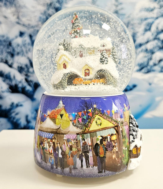 Mega Schneekugel Nostalgischer Weihnachtsmarkt mit Musikspieluhr Winter Wonderland