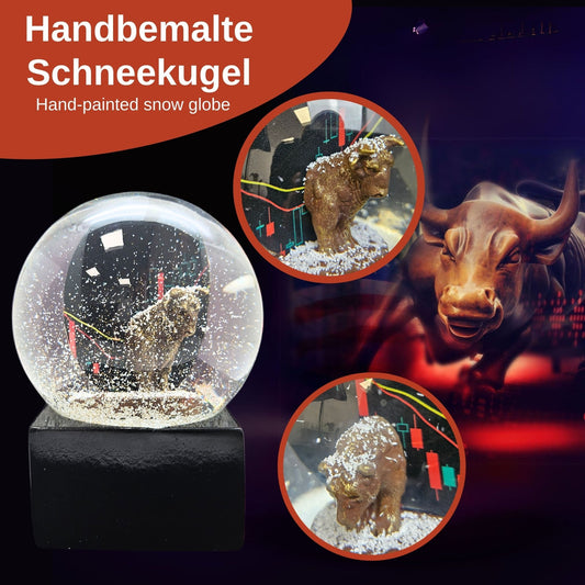 Moderne Designer Schneekugel Börse Bulle & Bär auf Sockel weiß eck 100 mm Durchmesser