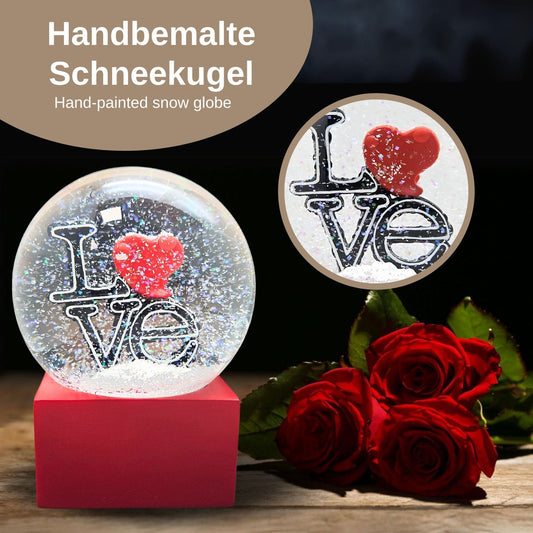 Moderne Designer Schneekugel LOVE auf Sockel rot eck 100 mm Durchmesser