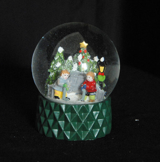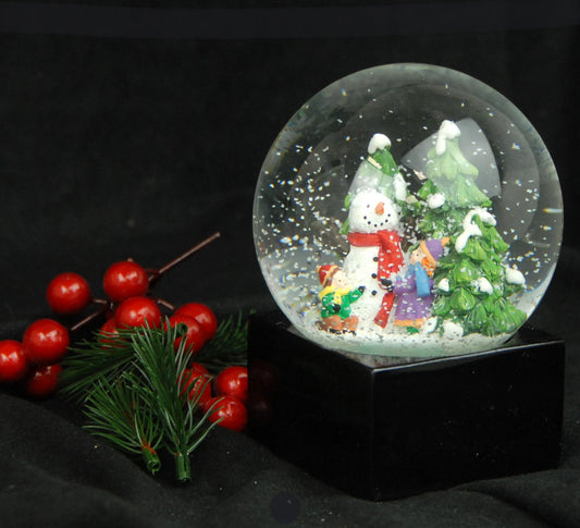 Schneekugel Kinder bauen Schneemann auf Sockel schwarz eckig "PURE-Line" 10 cm Durchmesser