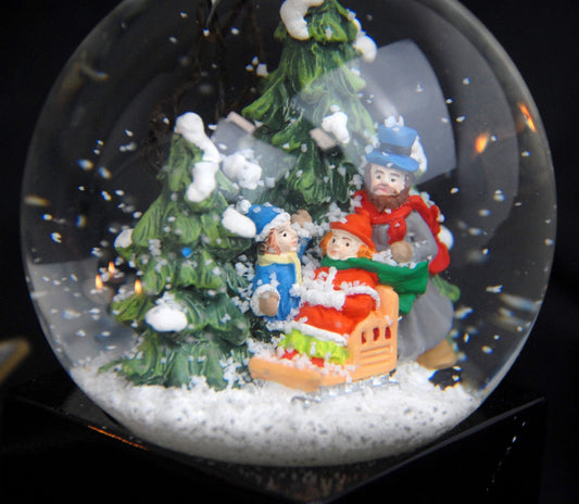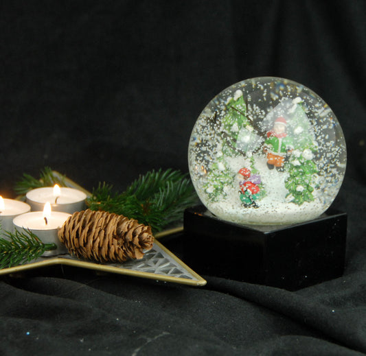 Schneekugel Familie im Winterwald auf Sockel schwarz eckig "PURE-Line" 10 cm Durchmesser