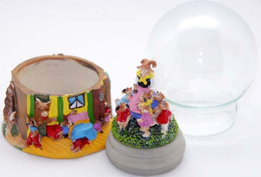 100mm-Do-it-Yourself Schneekugel mit Sockel Porzellan Kupfergold Relief Landschaft für Spieluhr - 1x Schnee