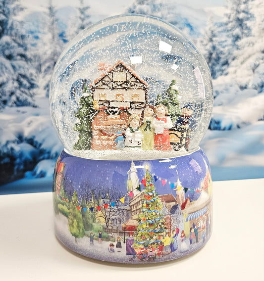 Mega Schneekugel Nostalgischer Weihnachtsmarkt mit Musikspieluhr Winter Wonderland