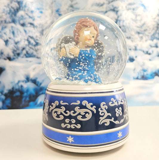 Schneekugel Engel blau mit Harfe mit Spieluhr 100 mm Durchmesser