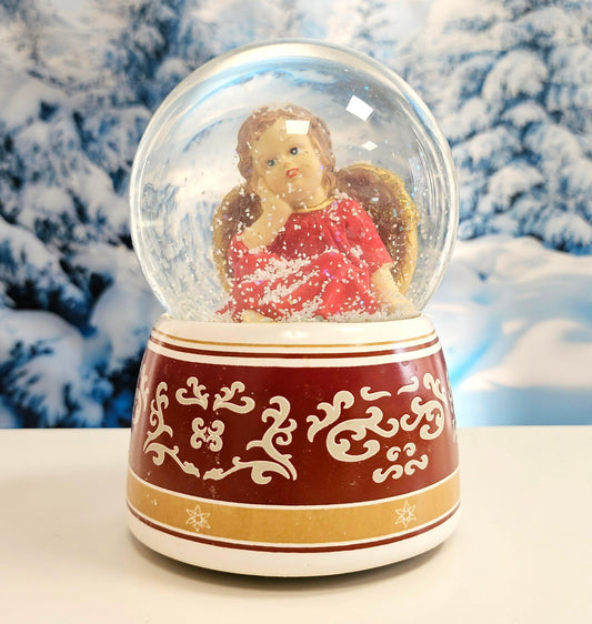 Schneekugel Engel rot mit Spieluhr 100 mm Durchmesser