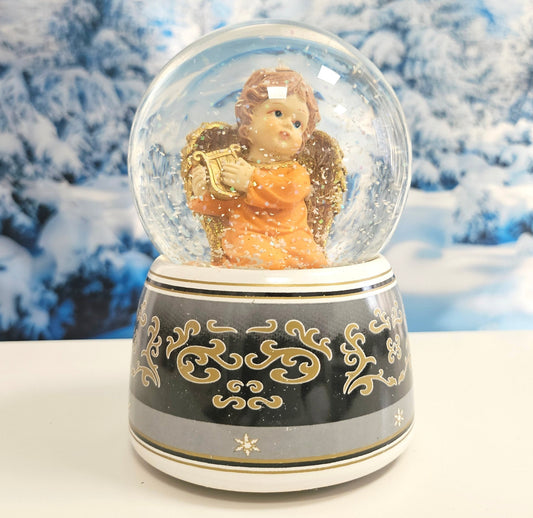 Schneekugel Engel terrakotta/schwarz mit Harfe mit Spieluhr 100 mm Durchmesser