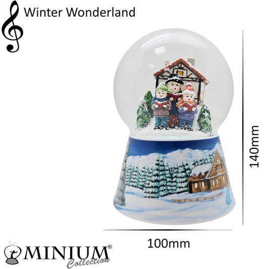 Schneekugel Weihnachtssinger vor Fachwerkhaus auf Sockel Winterlandschaft mit Spieluhr 10 cm Durchmesser