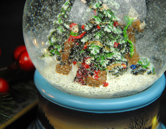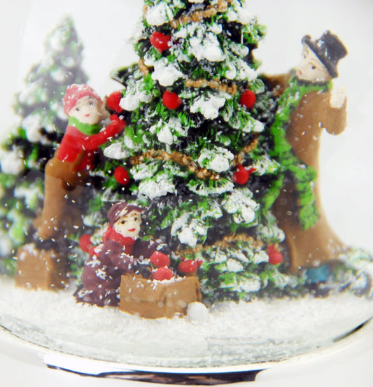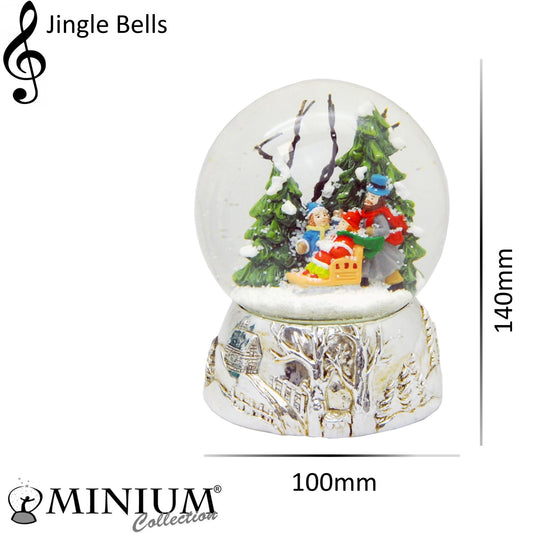 Schneekugel Familienspaziergang im Winterwald Silber Sockel Landschaft mit Spieluhr Jingle Bells 10 cm Durchmesser