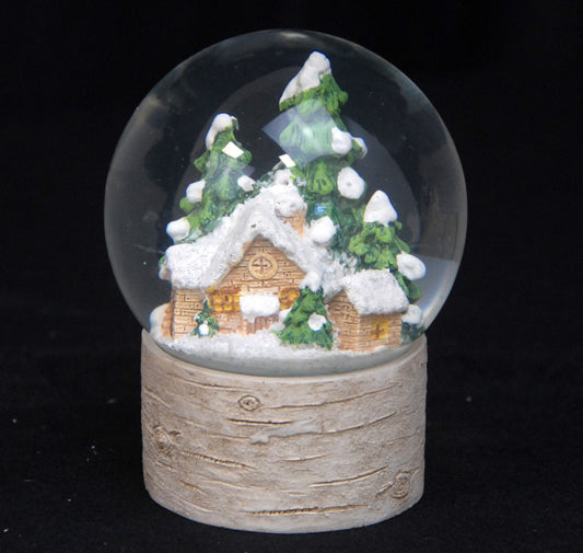 Schneekugel Hüttenzauber verschneite Berghütte auf Holzsockel "Country-Line" 10 cm Durchmesser
