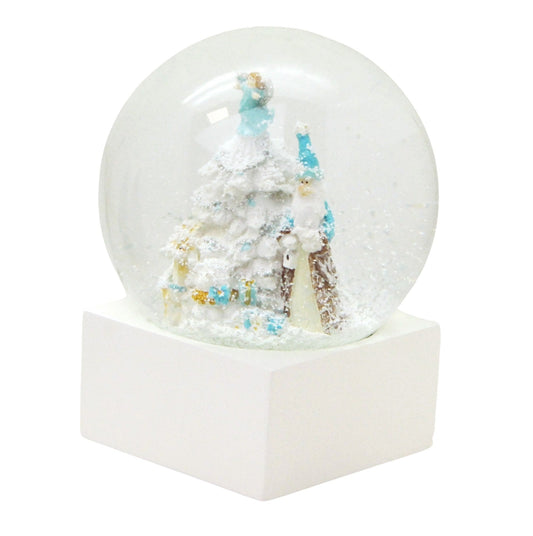 Stylische Schneekugel Weihnachtsmann Christbaum weiß blau türkis Sockel weiß eck PURE-Line 12 cm Durchmesser