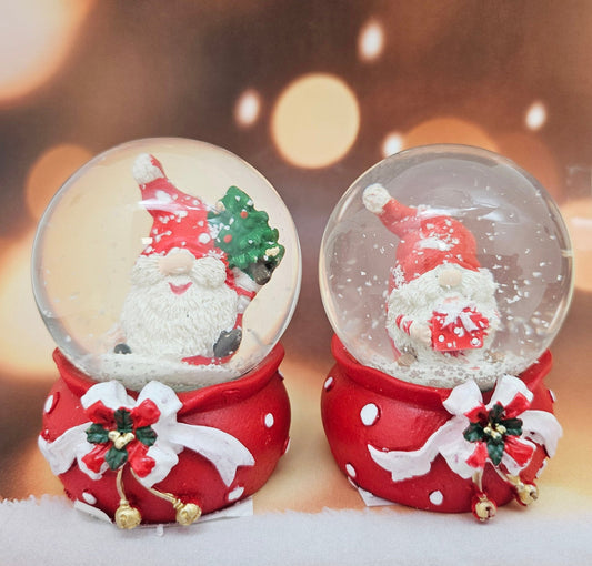 2 Süße Mini-Schneekugeln Weihnachtswichtel rot weiß 45mm Durchmesser