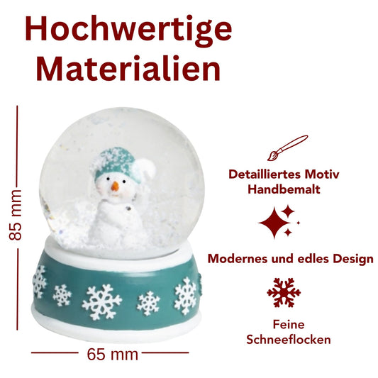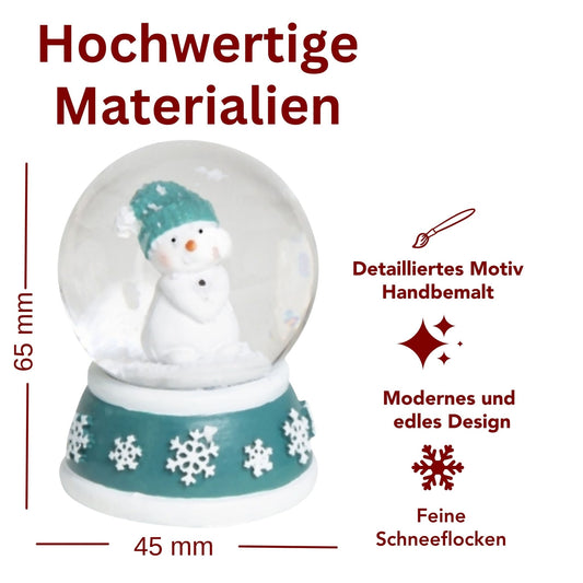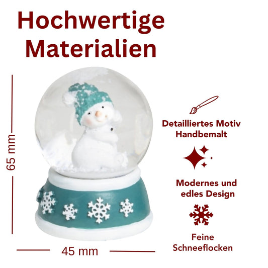 4 süße Mini-Schneekugeln Schneemann mit Sockel türkis weiß Schneeflocke B: 45mm