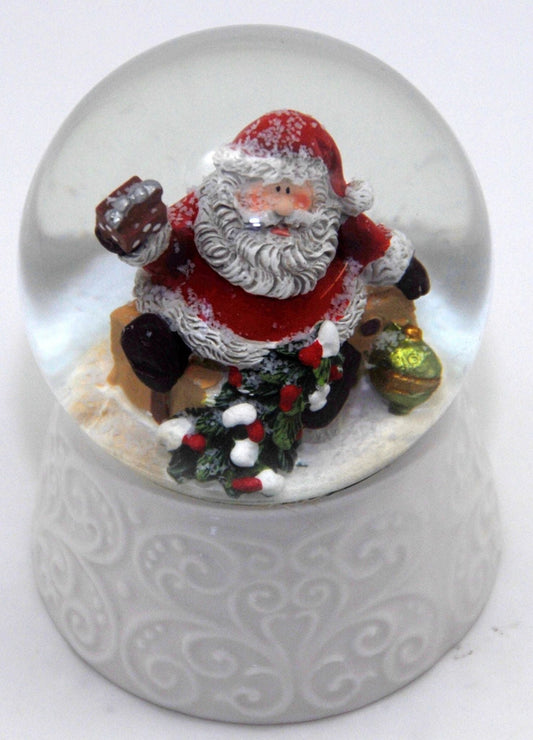 Edle Schneekugel Santa auf Porzellansockel weiß Ornamente - 65mm Durchmesser