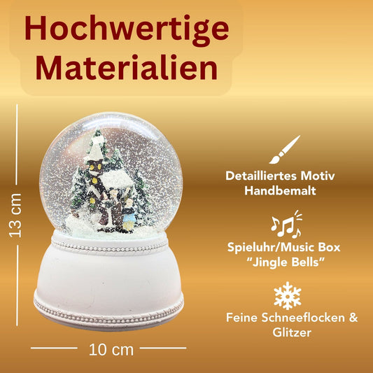 Nostalgische Schneekugel Christbaum schmücken auf Sockel Winterlandschaft ocker 100 mm Durchmesser mit Spieluhr