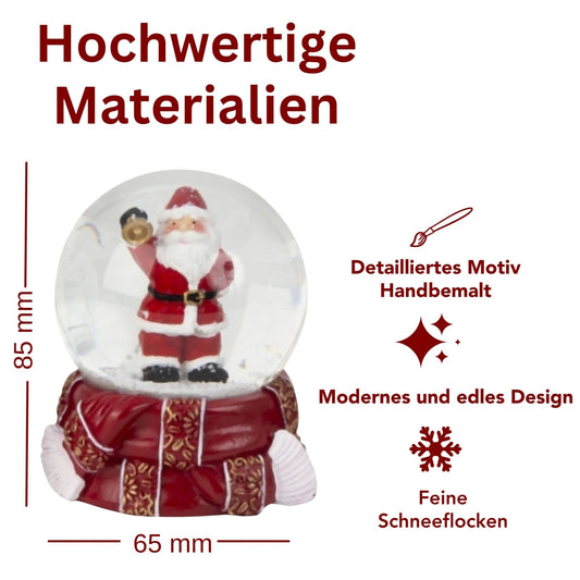 Süße Mini-Schneekugel Weihnachtsmann Schneeball auf Sockel rot gold Winterschal B: 45mm