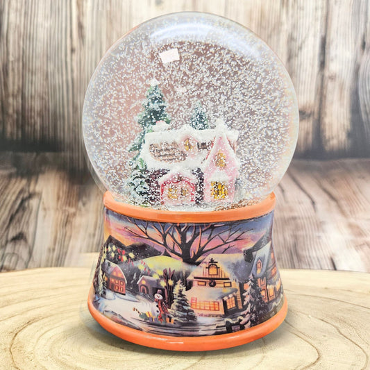 Nostalgische Schneekugel Zuckerbäckerhaus auf Sockel Winterlandschaft 100 mm Durchmesser mit Spieluhr