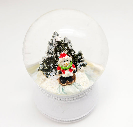 Süße Mini-Schneekugeln Schneemann Weihnachtsmütze mit Sockel weiß Nostalgie B: 45mm