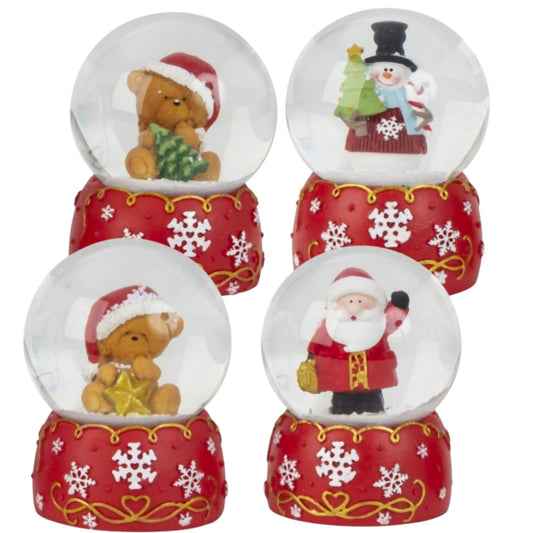 4 Schneekugeln Schneemann Weihnachtsmann mit Sockel rot weiß Schneeflocke B: 65mm