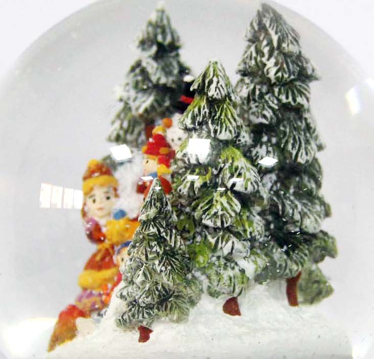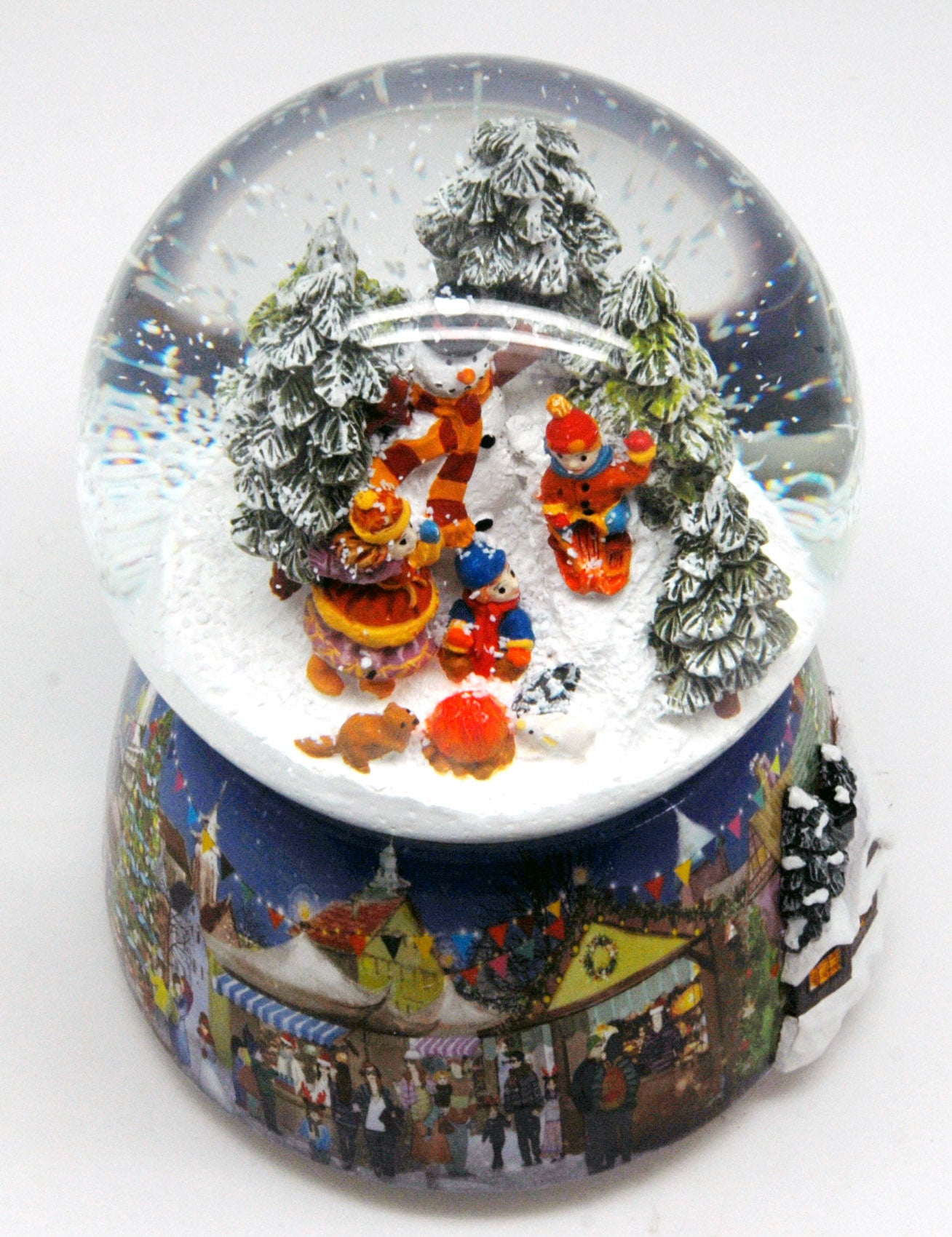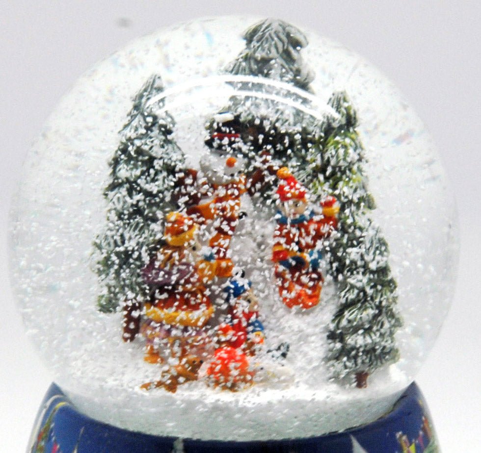 Nostalgie-Schneekugel mit Kindern und Schneemann mit Spieluhr - 100mm Durchmesser