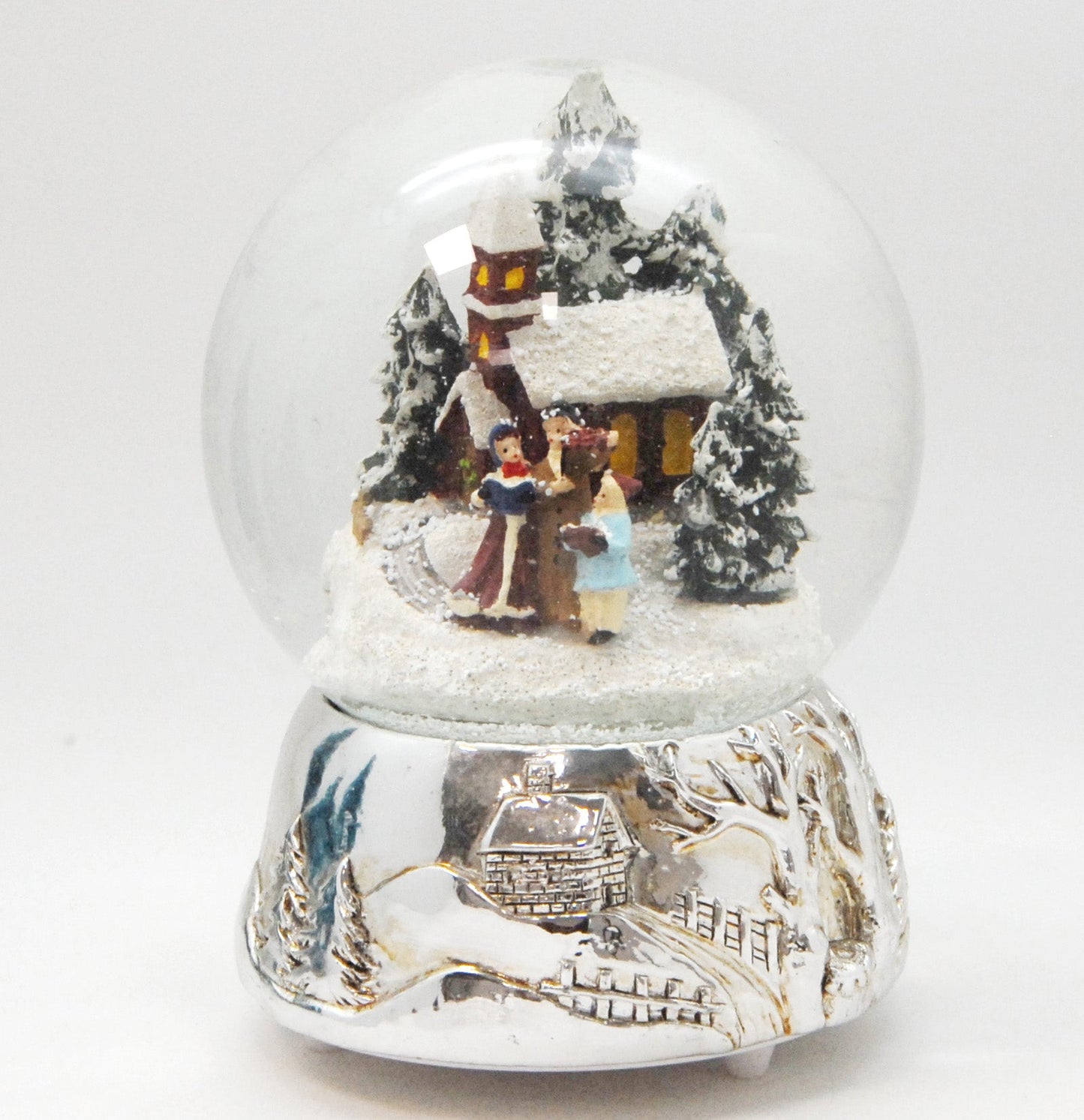 Schneekugel Romantischer Winterspaziergang auf Silber Sockel mit Spieluhr Jingle Bells 10 cm Durchmesser