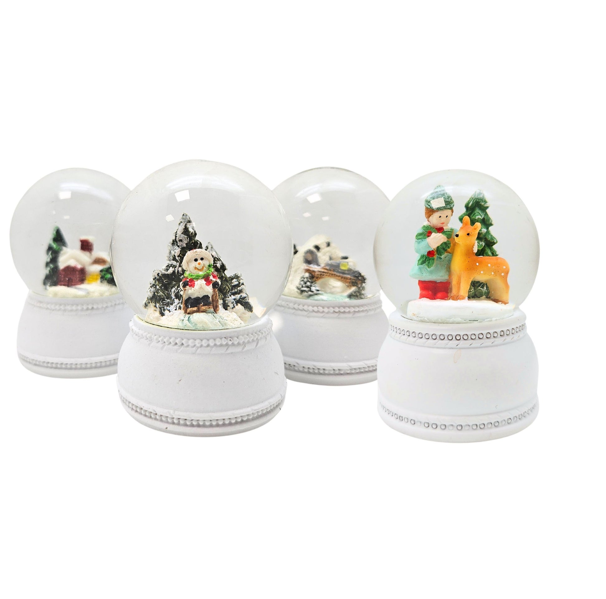 4 süße Mini-Schneekugeln Winter & Weihnacht, Rehkitz mit Sockel weiß Nostalgie B: 45mm